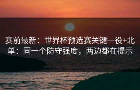 赛前最新:世界杯预选赛关键一役+北单:同一个防守强度,两边都在提示 引言 在世界杯预选赛的关...