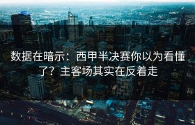 数据在暗示:西甲半决赛你以以为看懂了?主客场其实在反着走 引子:当你以为懂透了两回合淘汰赛的“主客场...