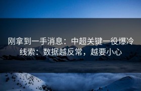 刚拿到一手消息:中超关键一役爆冷线索:数据越反常,越要小心 近日关于中超关键对决的讨论再起波澜。部分...